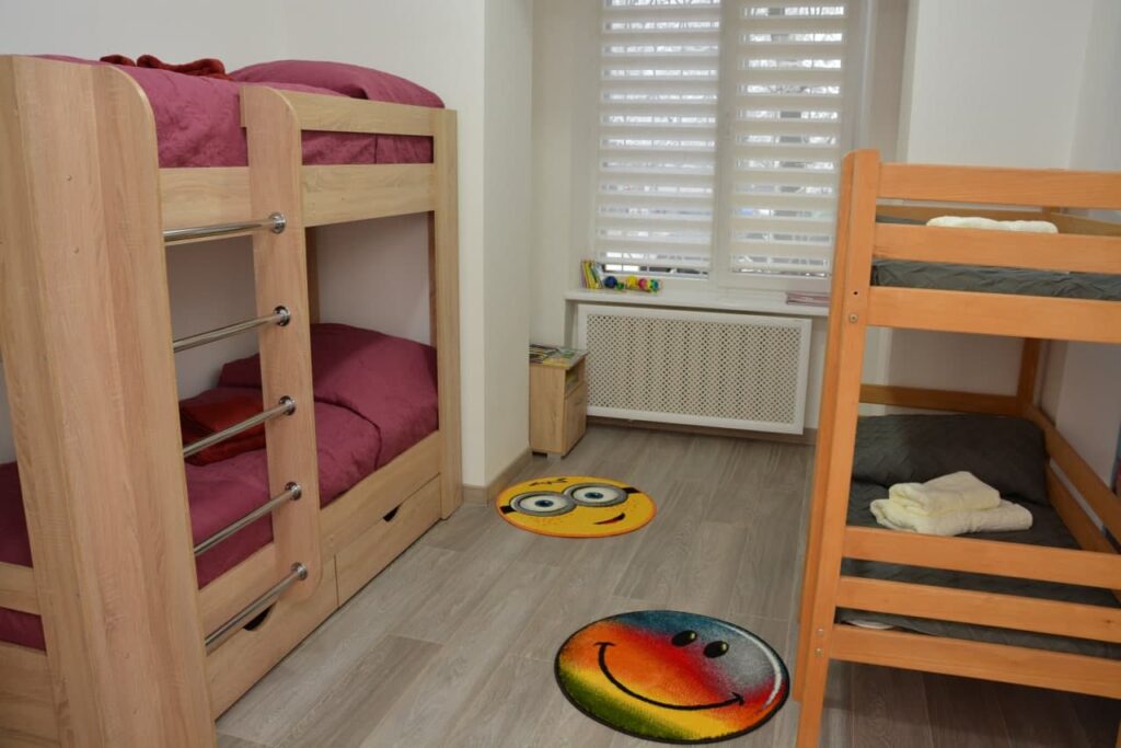В этом помещении люди, пострадавшие от насилия, смогут получить психологическую поддержку и помощь. Здесь также будут проводить консультации представители медицинских служб и юридических учреждений. Находиться в этой комнате смогут до 12 человек одновременно. Здесь обустроены три спальни, кухня, ванная и туалет. Такую комнату в Черновцах открыли в рамках проекта «Трамплин к равенству», за реализацию которого взялся Черновицкий городской совет с Фондом ООН в области народонаселения в Украине, благотворительным фондом «Украинский фонд общественного здоровья» и общественной организацией «Центр общественной активности «Синергия» ”.