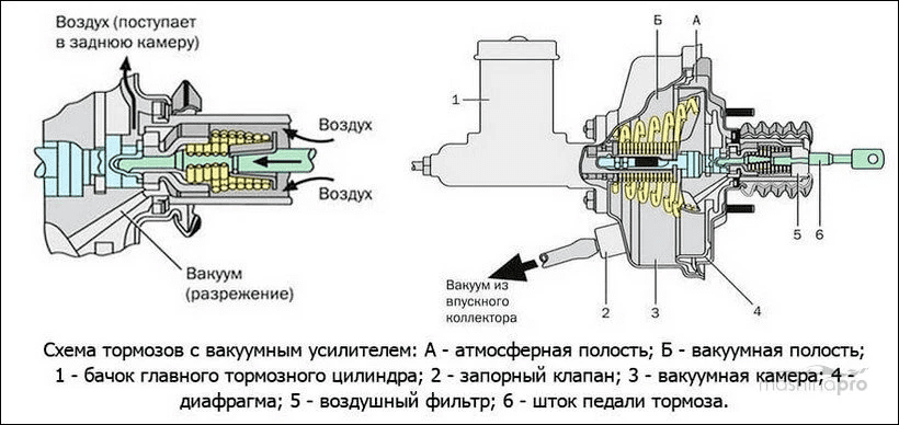 Вакуумний підсилювач гальм, поломка та принцип роботи