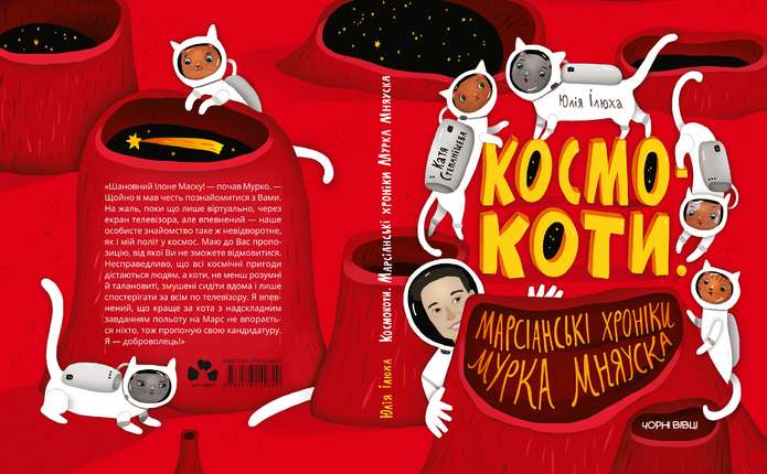Зовсім скоро у дитячому арт-видавництві «Чорні вівці» вийде у світ нова книга української письменниці та журналістки Юлії Ілюхи «Космокоти. Марсіанські хроніки Мурка Мняуска». Дитяче видання розповідатиме про кота, який загорівся бажанням полетіти у космос на розвідку Марса. А все через захоплення відомим винахідником Ілоном Маском, основна задача діяльності якого – дослідити та заселити планету Марс. Читайте детальніше про книгу далі на ichernivchanyn.